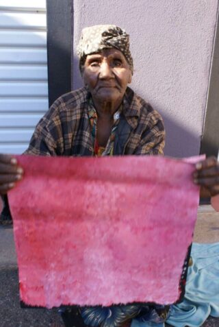 コンカーベリー(またはコンクルベリー)は、中央砂漠の先住民が好んで食べる甘くて黒い実で、Kathleenは「Anwekety」または「Bush plum」と呼んでいます。1年のうち数週間だけ植物(Carissa lanceolata)に実をつけますが、Kathleenの住む地域の人達はこの実を多く集めて乾燥させて保存し、食べる前に再び水に浸します。コンカーベリーの植物は、高さが2mにもなる、絡み合うようなトゲのある低木で、雨の後には香りの良い白い花が咲き、薬効があることが知られています。根のオレンジ色の内皮を水に浸して、その溶液を薬用の洗浄剤として使うこともできます。特に皮膚や目の病気に効果があると言われ、この木の棘はイボを治すのに使われます。